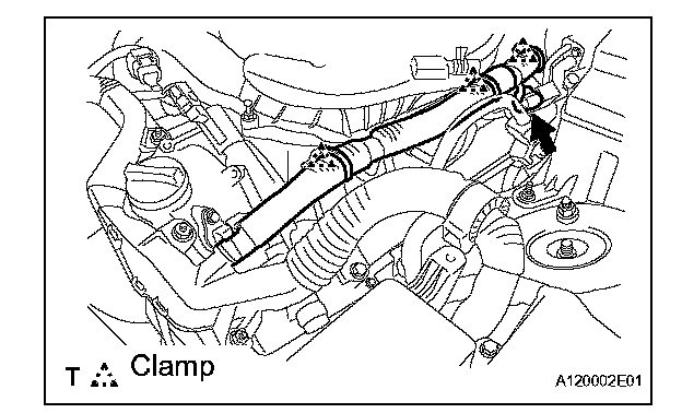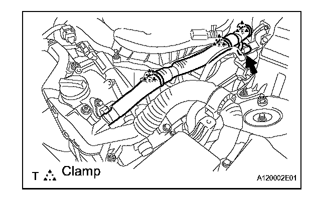 a. Connect the ventilation hose to the cylinder head cover with the clamp.