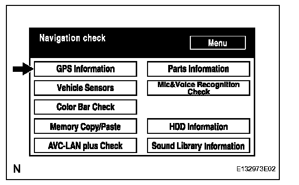 a. Select "Navigation Check" from the "Diagnosis Menu" screen.