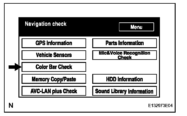 a. Select "Color Bar Check" from the "Navigation check" screen.
