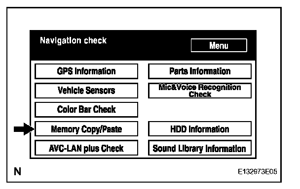 a. Select "Memory Copy/Paste" from "Navigation check" screen.