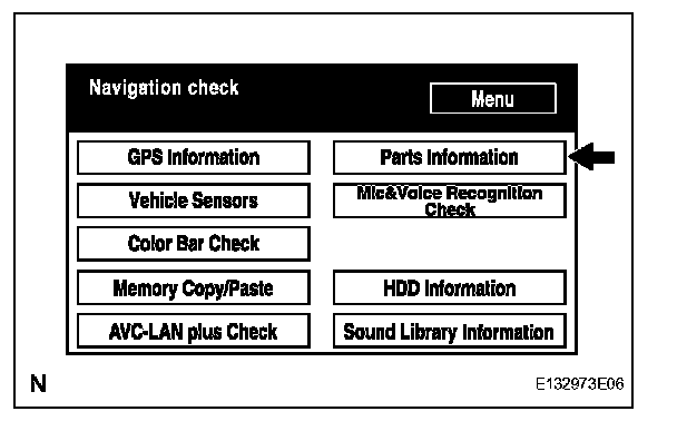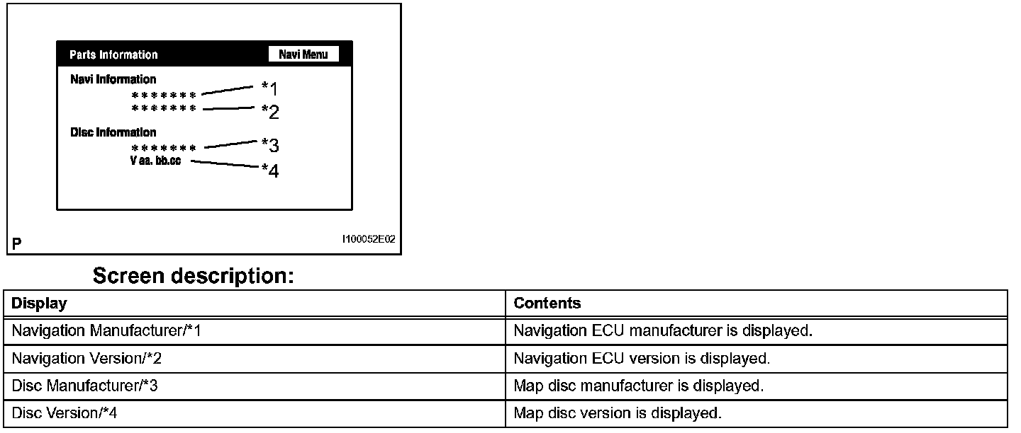 b. Check the navigation and disc information when the "Parts Information" screen is displayed.