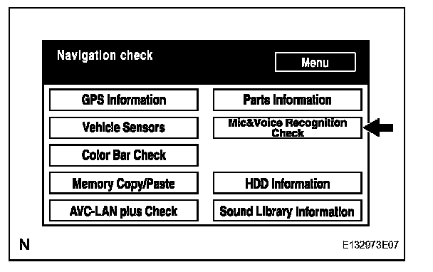 a. Select "Mic & Voice Recognition Check" on the "Navigation check" screen to display the "MICROPHONE & VOICE RECOGNITION CHECK" screen.