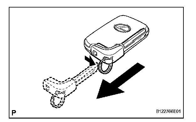 a. Push and hold the release knob in the direction indicated by the arrow in the illustration. Then take the mechanical key out of the case.