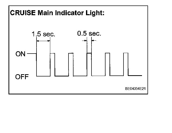 - If a malfunction occurs in the vehicle speed sensors, the stop light switch, or other related parts during cruise control driving, the ECU actuates AUTO CANCEL of the cruise control and blinks the CRUISE main indicator light. This indicator light informs the driver of the malfunction. At the same time, the malfunction is stored as a diagnostic trouble code.