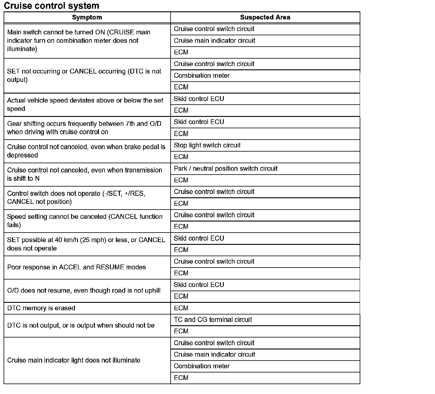 PROBLEM SYMPTOMS TABLEProblem Symptoms Table - Cruise Control System: