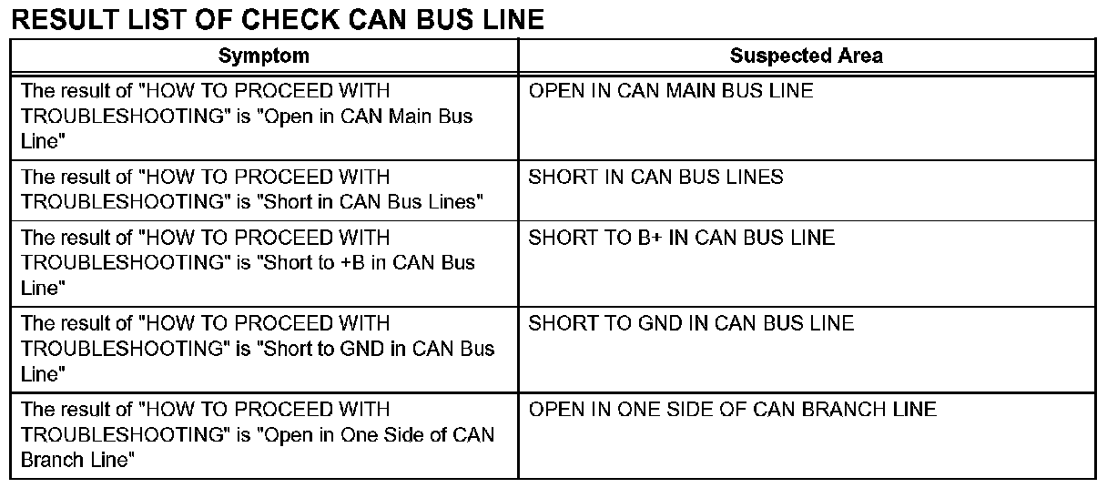 Problem Symptoms Table-Result List Of Check CAN Bus Line: