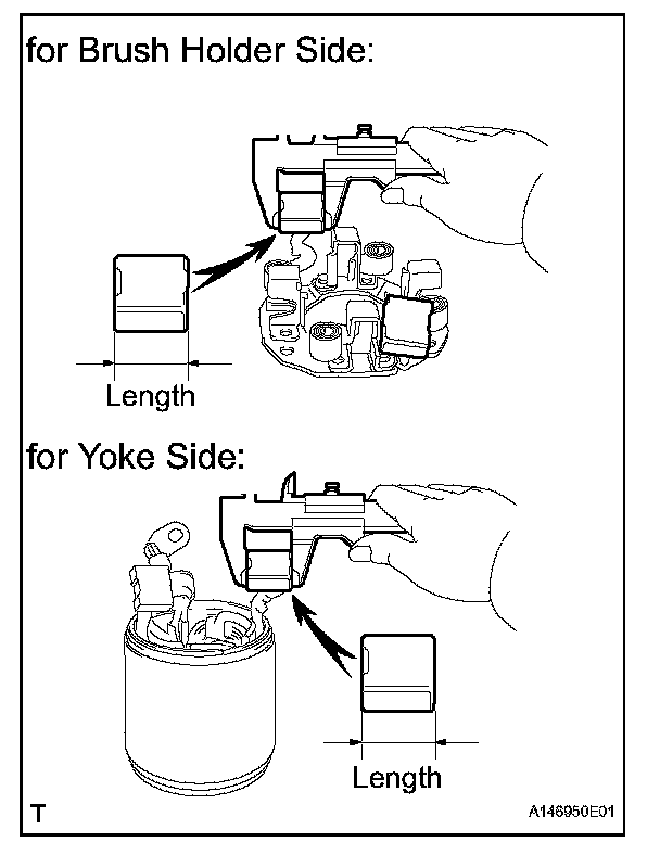 If the brush length is less than the minimum, replace the brush holder and yoke assembly.
