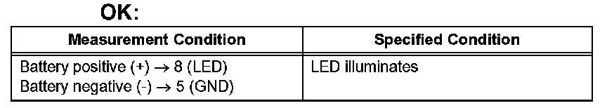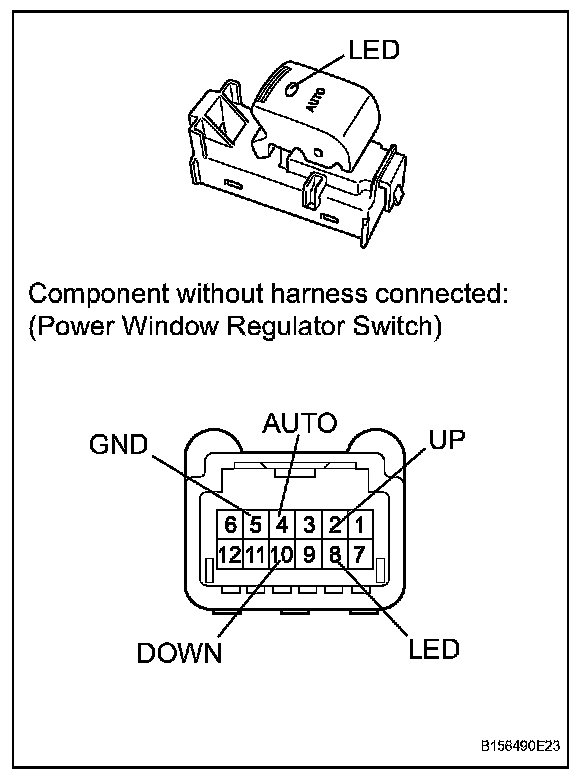 c. Apply battery voltage to the power window regulator switch and check that the LED illuminates.