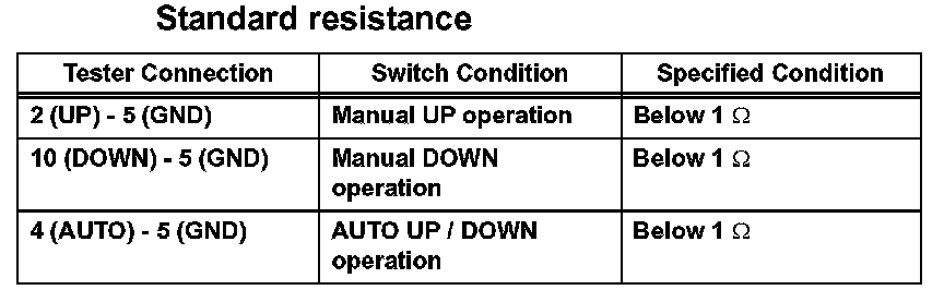 FRONT PASSENGER SIDE POWER WINDOW SWITCHINSPECTION
