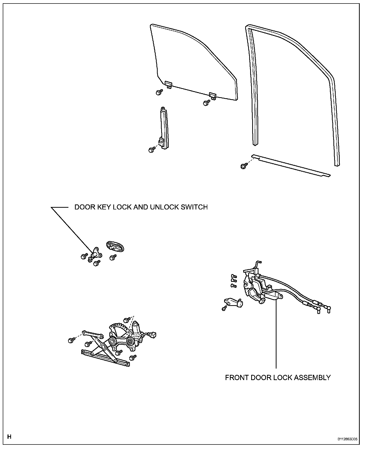 2. REMOVE FRONT DOOR LOCK ASSEMBLY