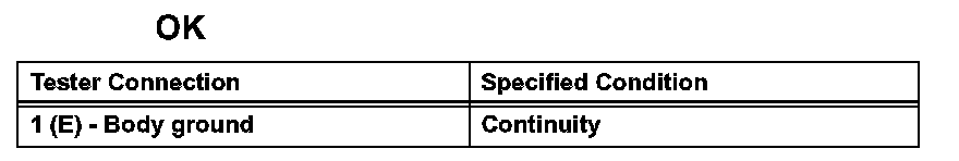 If the result is not as specified, repair or replace the harness and connector.