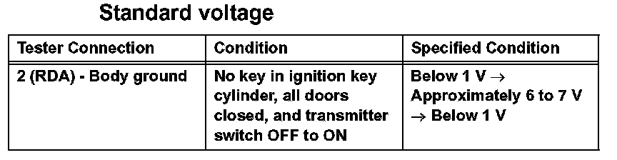 HINT: This mode is to check the condition of the signal transmission and reception among the transmitter, the receiver and ECU. If all transmitters for a vehicle do not respond, there is a possibility that the receiver or the wire harness is faulty.