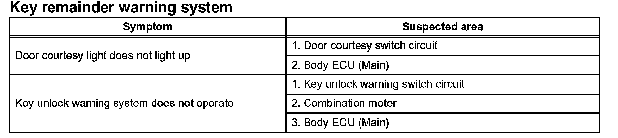 PROBLEM SYMPTOMS TABLEProblem Symptoms Table-Key Reminder Warning System: