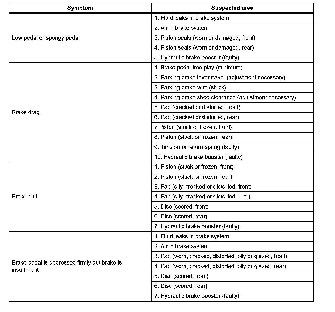 PROBLEM SYMPTOMS TABLEProblem Symptoms Table-Brake System (Part 1):