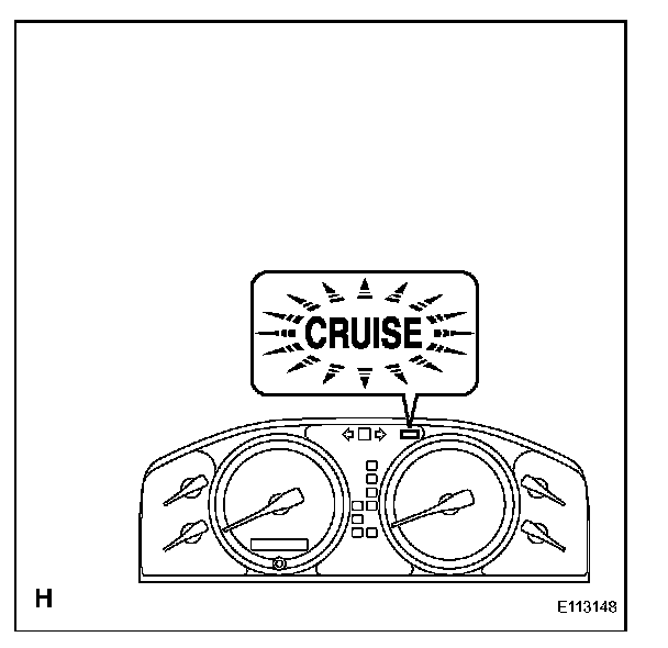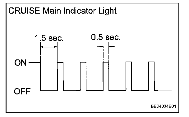 b. Check that the CRUISE main indicator light comes on when the cruise control main switch is turned ON, and that the indicator light goes off when the main switch is turned OFF.