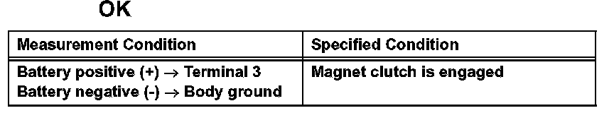 If the result is not as specified, replace the compressor.If the result is not as specified, replace the compressor.