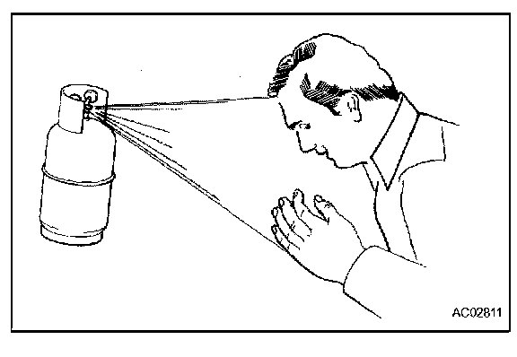 2. DO NOT HANDLE REFRIGERANT IN AN ENCLOSED AREA OR NEAR AN OPEN FLAME