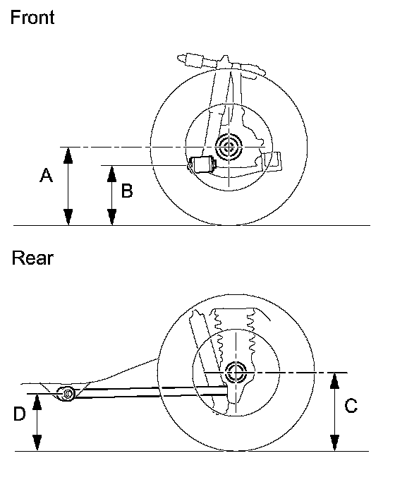 NOTICE: Before inspecting the wheel alignment, adjust the vehicle height to the specified value. If the vehicle height is not the specified value, try to adjust it by pushing down on or lifting the body