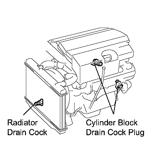 b. Loosen the radiator drain cock plug and 2 cylinder block drain cock plugs. Then drain the coolant.