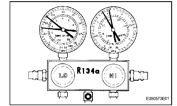 2. INSPECT REFRIGERANT PRESSURE WITH MANIFOLD GAUGE SET