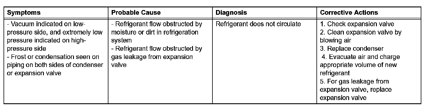 5 The A/C system does not function intermittently because the refrigerant does not circulate.