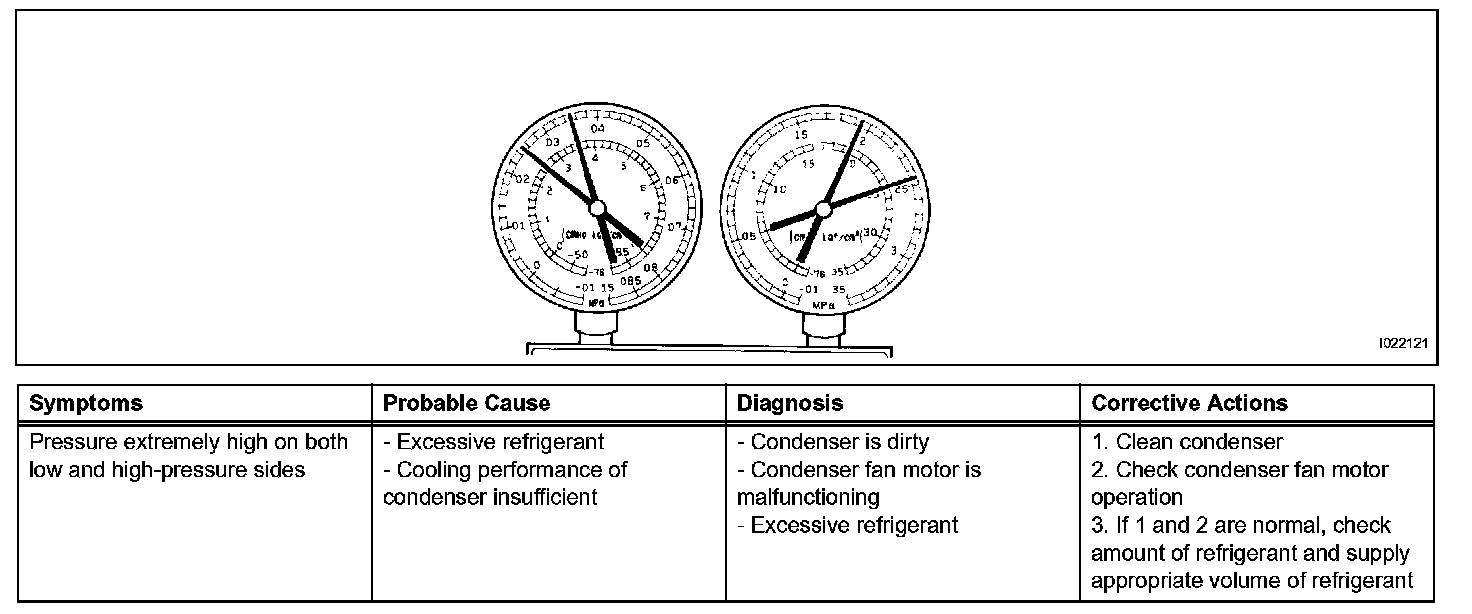 a. This method uses a manifold gauge set to locate problem areas. Read the manifold gauge pressure when these conditions are established.