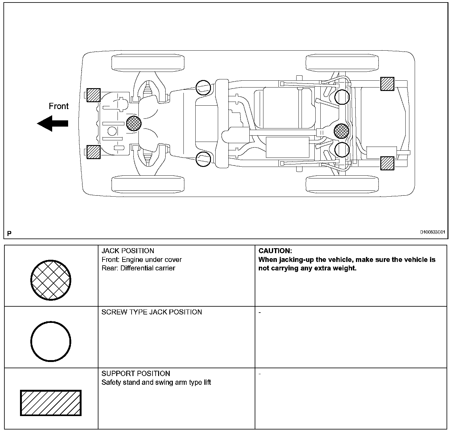 a. The vehicle must be unloaded before jacking up / lifting up the vehicle. Never jack up / lift up a heavily loaded vehicle.