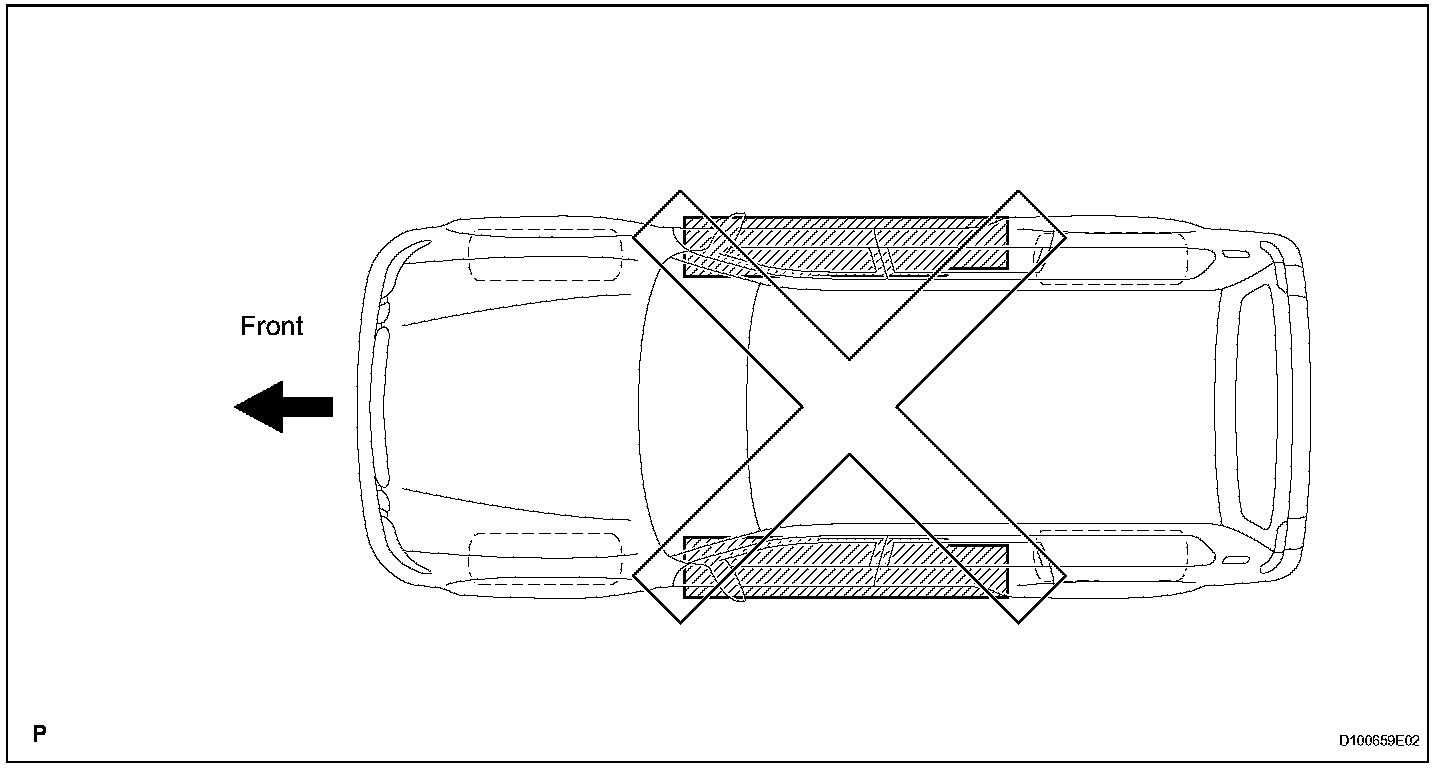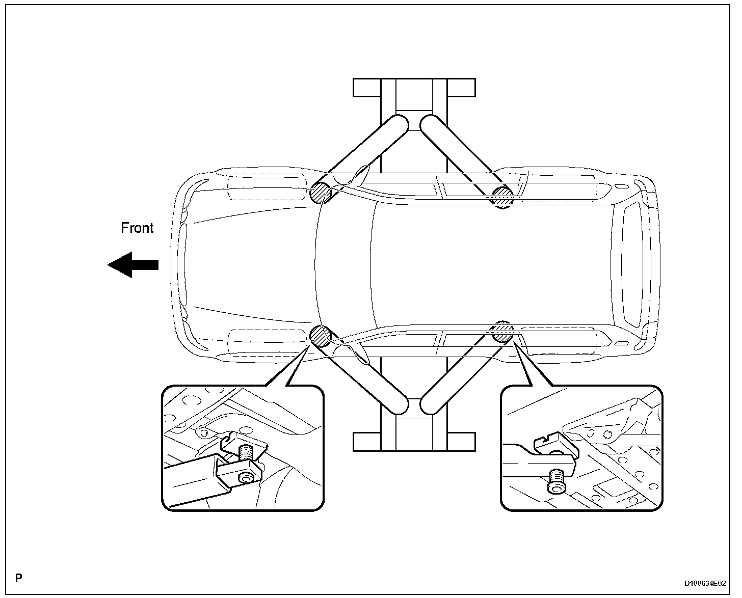NOTE: Never use the plate type lift. Using it to lift up the vehicle will cause the body shape to warp.
