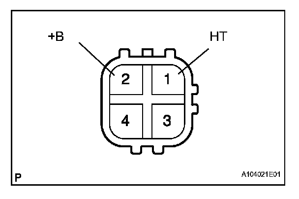 Measure the heater resistance between terminals 1 (HT) and 2 (+B) of the sensor.