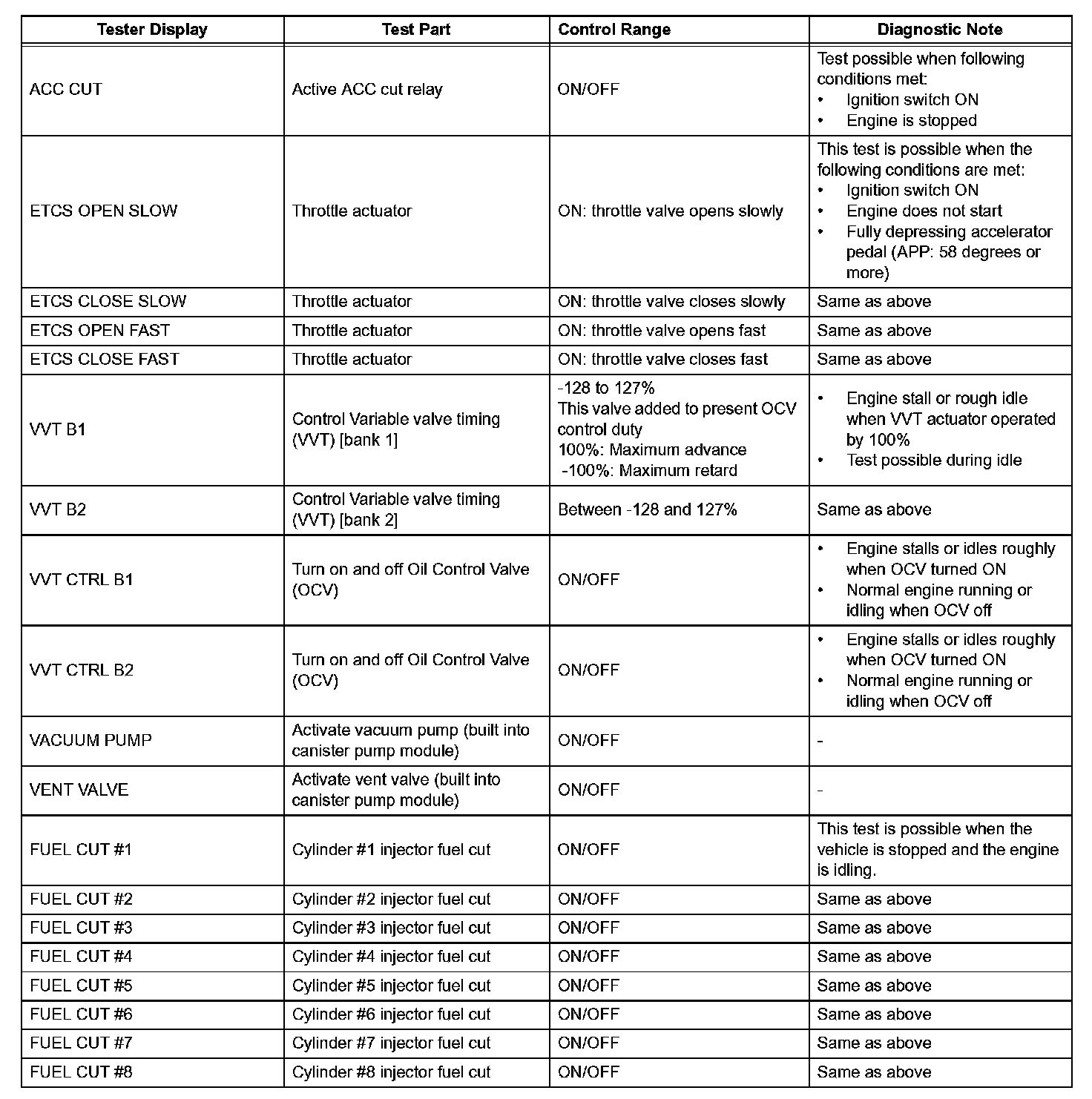 ACTIVE TESTHINT: Performing the intelligent tester's ACTIVE TEST allows relay, Vacuum Switching Valve (VSV), actuator and other items to be operated without removing any parts. Performing the ACTIVE TEST early in troubleshooting is one way to save time. The DATA LIST can be displayed during the ACTIVE TEST.