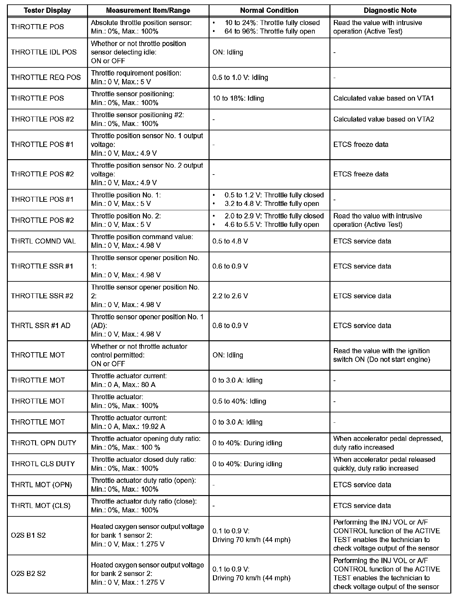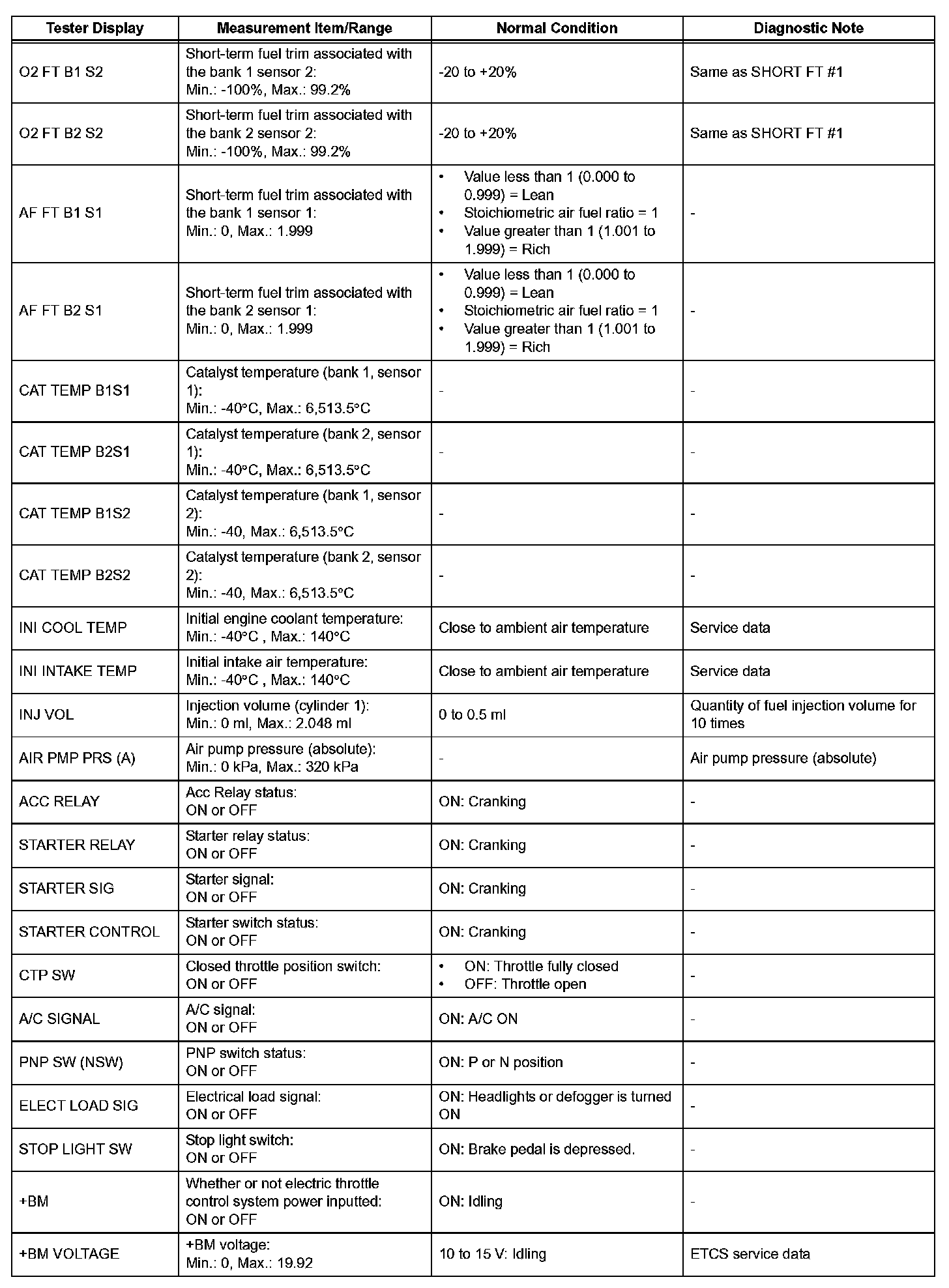 HINT: If no conditions are specifically stated for "idling", the shift lever is in the N or P position, and the A/C switch is OFF and all accessory switches are OFF.