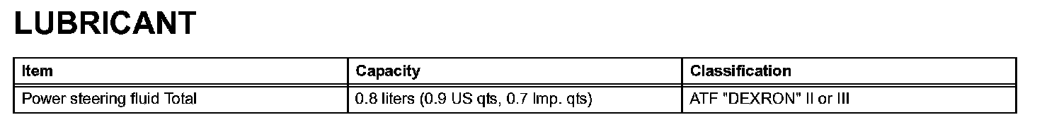 Power Steering - Lubricant:
