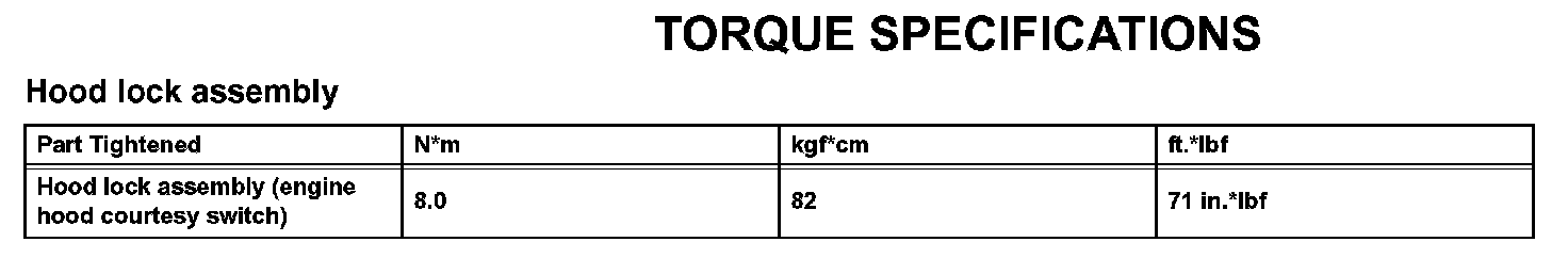 Theft Deterrent System - Torque Specifications: