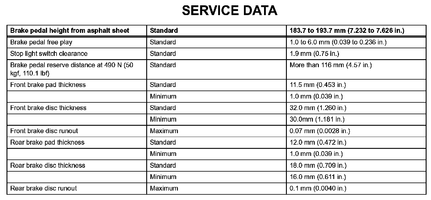 Brake - Service Data: