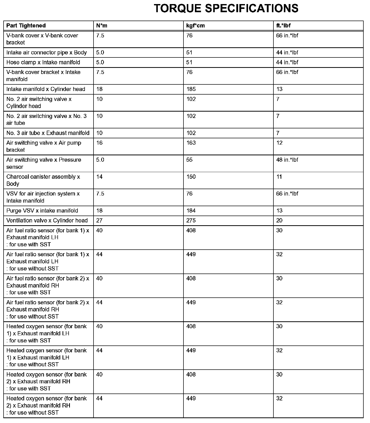 Emission Control - Torque Specifications: