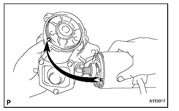 a. Align the claw of the brush holder with the claw groove of the starter yoke.