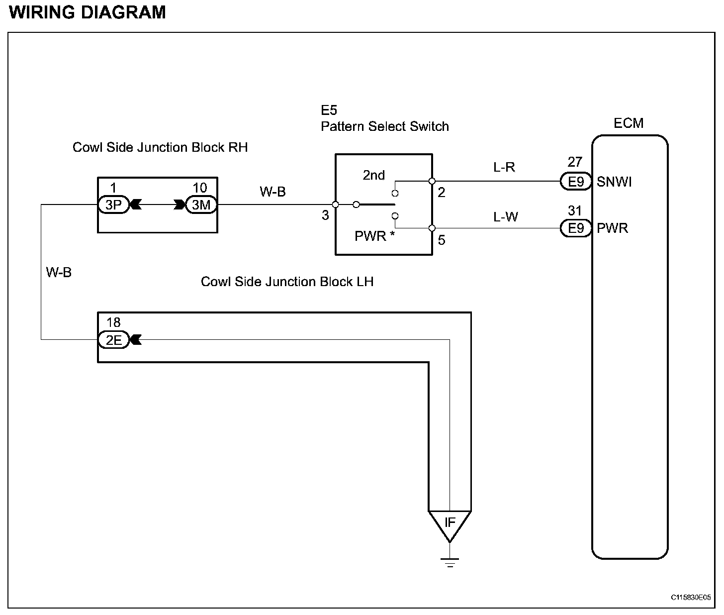 The ECM memory contains the shift programs for the NORMAL and POWER patterns, 2 position, L position and lock-up patterns. Following the programs corresponding to the signals from the pattern select switch, the park/neutral position and other various sensors, the ECM switches the solenoid valves ON and OFF, and controls the transmission gear change and the lock-up clutch operation.