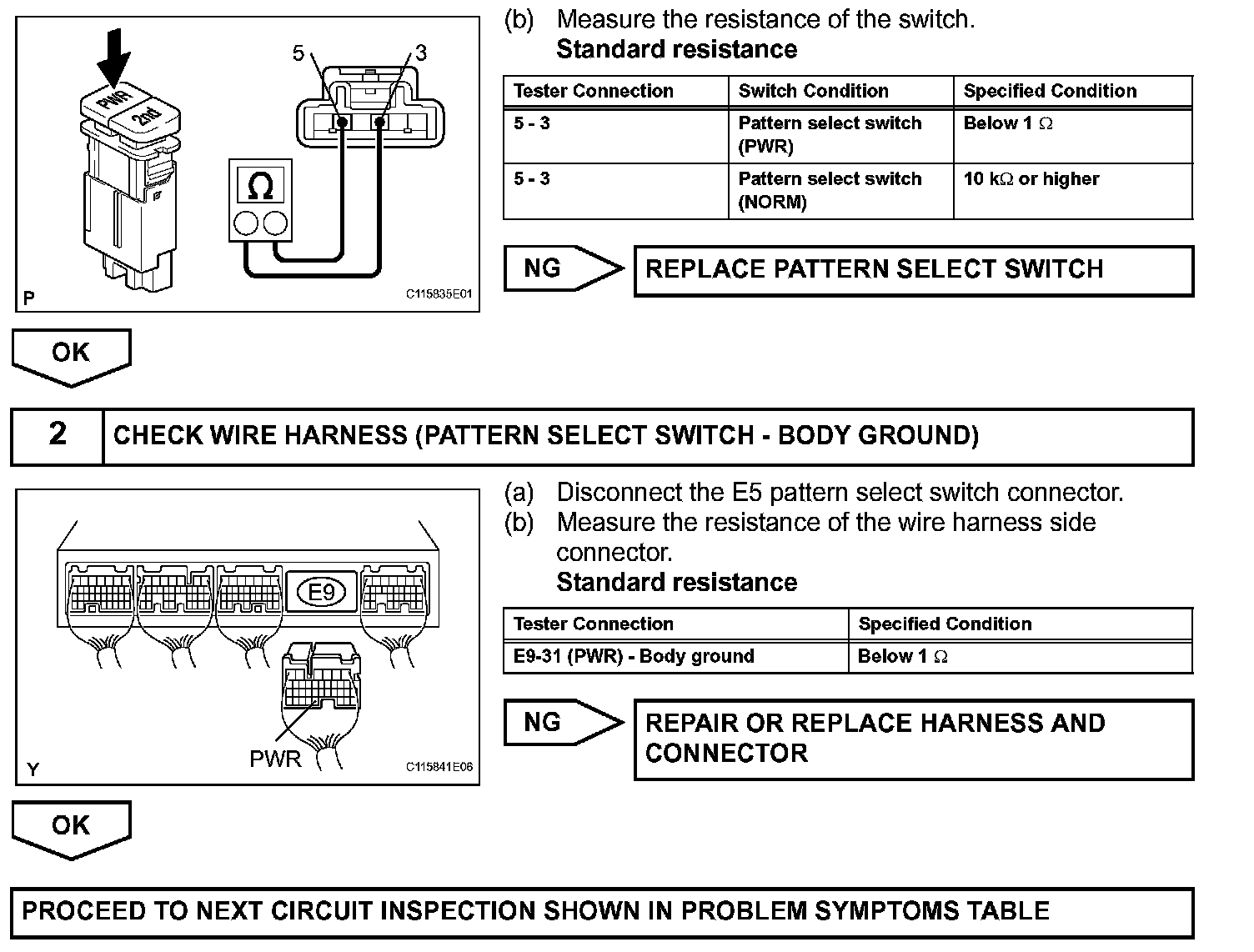 When the PWR mode switch is pushed, the switch contact is made and the PWR mode is selected.