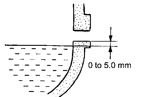 b. Check that the oil level is between 0 to 5.0 mm (0 to 0.20 inch) from the bottom lip of the case plug (filler plug) hole.