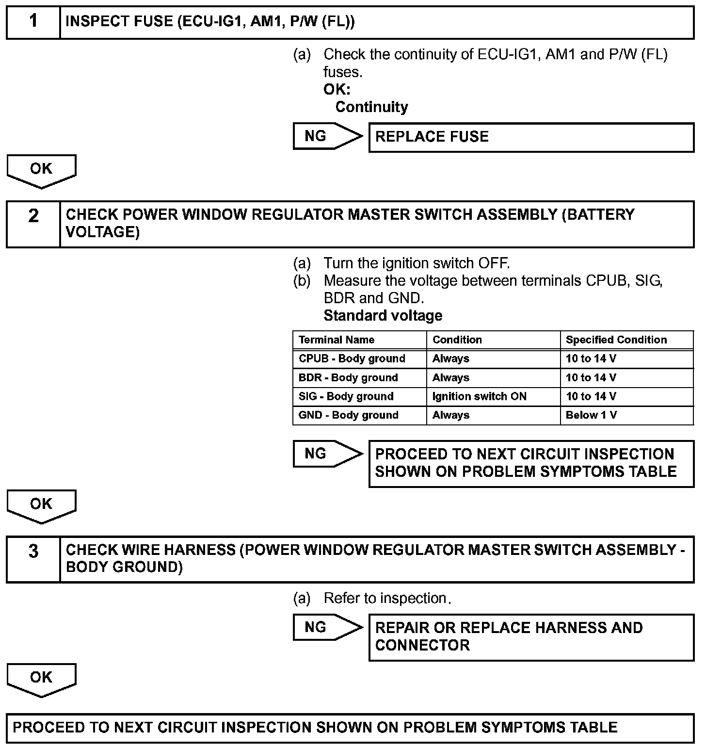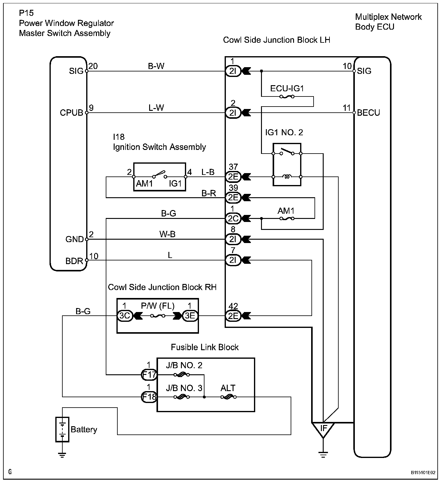 Power Source CircuitDESCRIPTIONThis circuit supplies power to operate the power window master switch assembly.