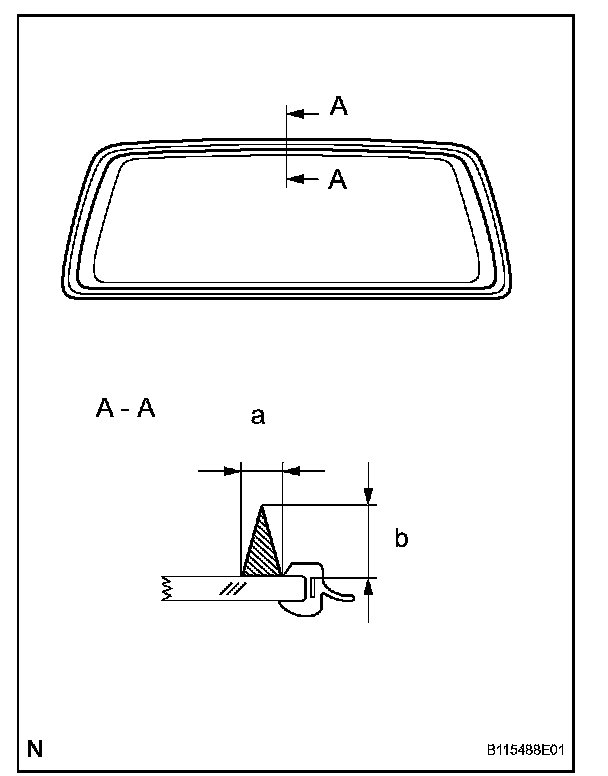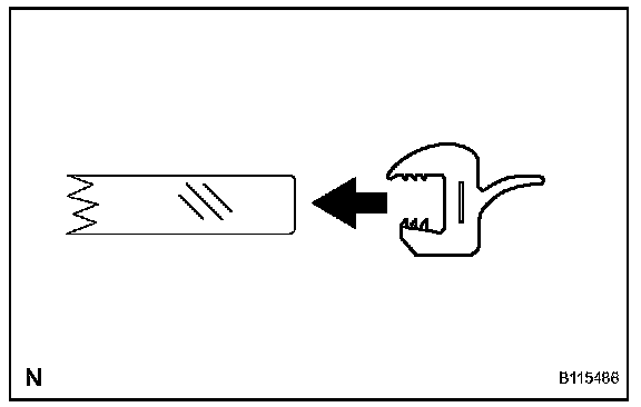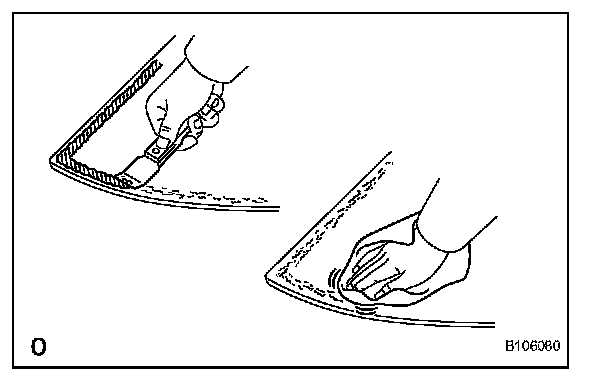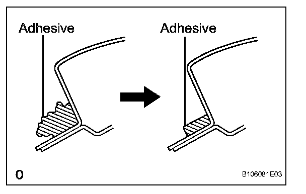 1. On the contact surface of the vehicle body, use a knife to cut away excess adhesive as shown in the illustration.