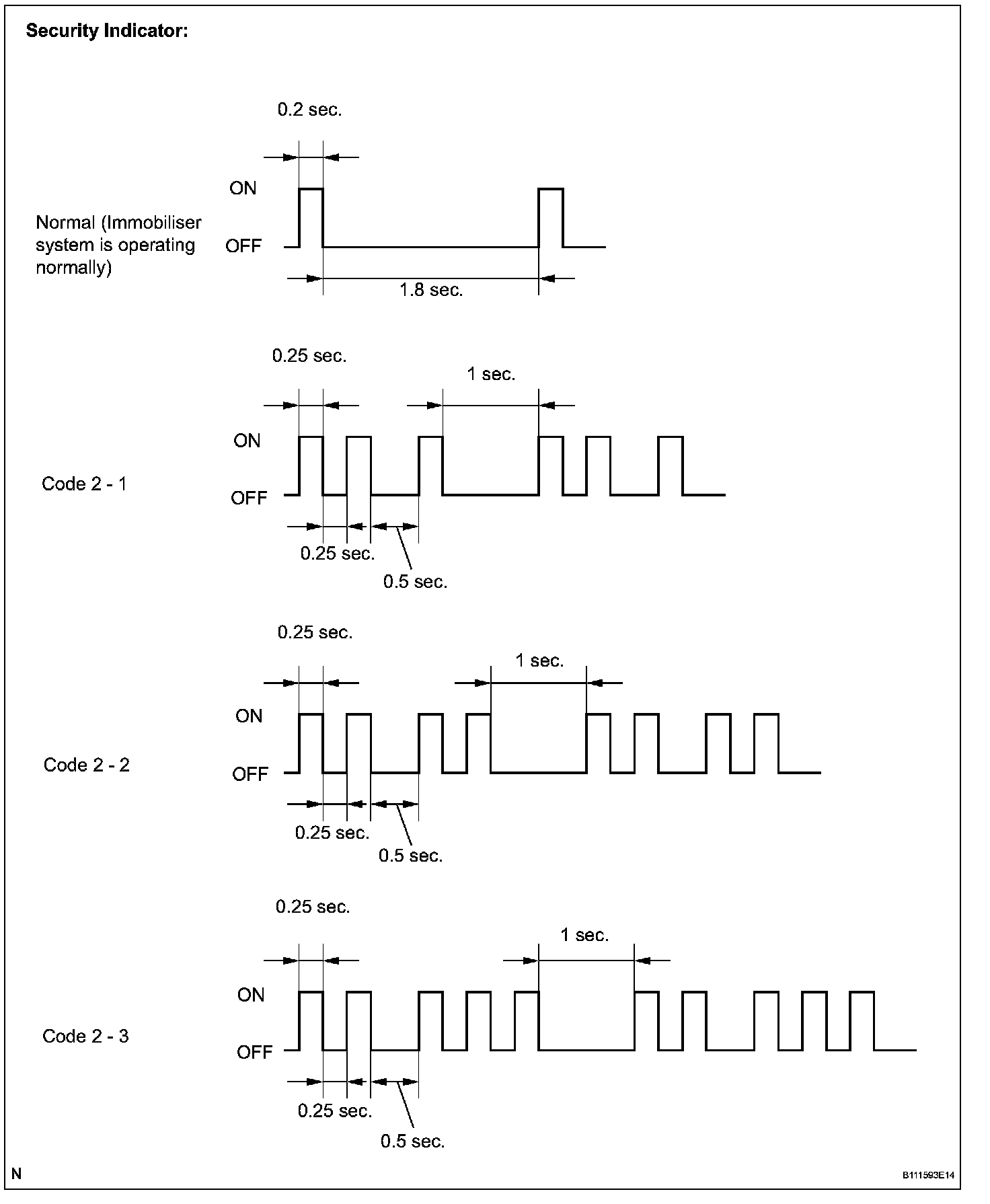 - When the immobilizer system is operating normally and the key is pulled out, the security indicator blinks continuously.