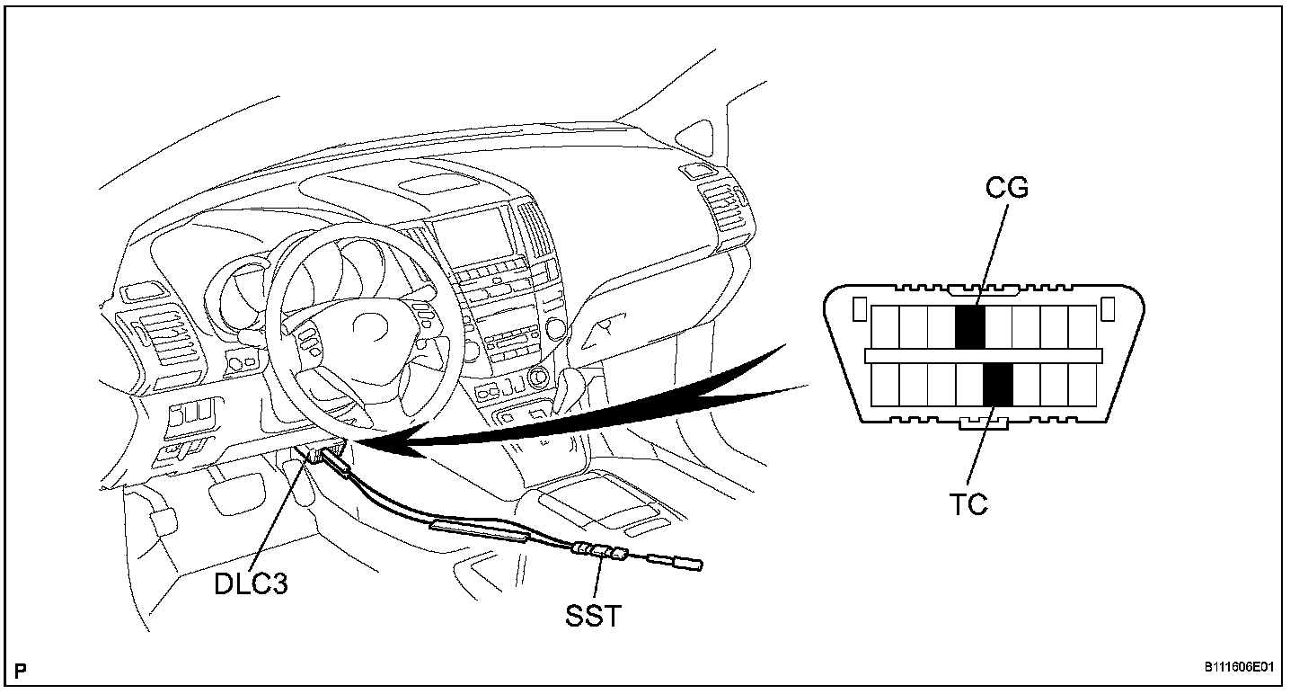 1. Using SST, connect terminals TC and CG of the DLC3.
