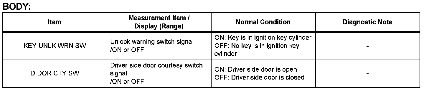 READ DATA LISTHINT: Using the intelligent tester's DATA LIST allows switch, actuator and other item values to be read without removing any parts. Reading the DATA LIST early in troubleshooting is one way to save time.
