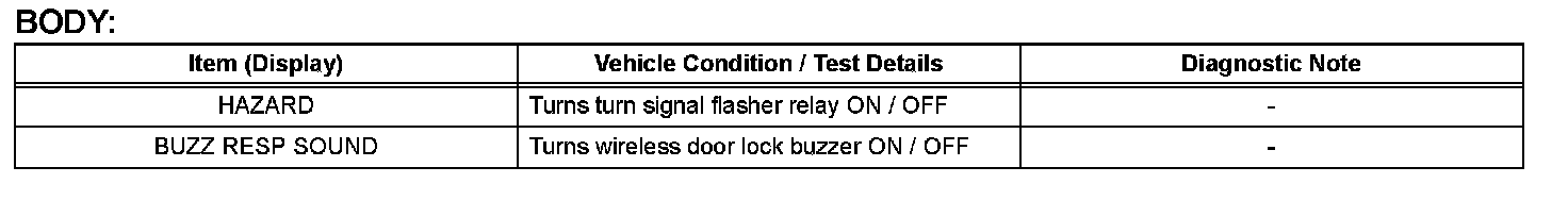 c. Enter the following menus: DIAGNOSIS / OBD / MOBD / BODY / ACTIVE TEST.
