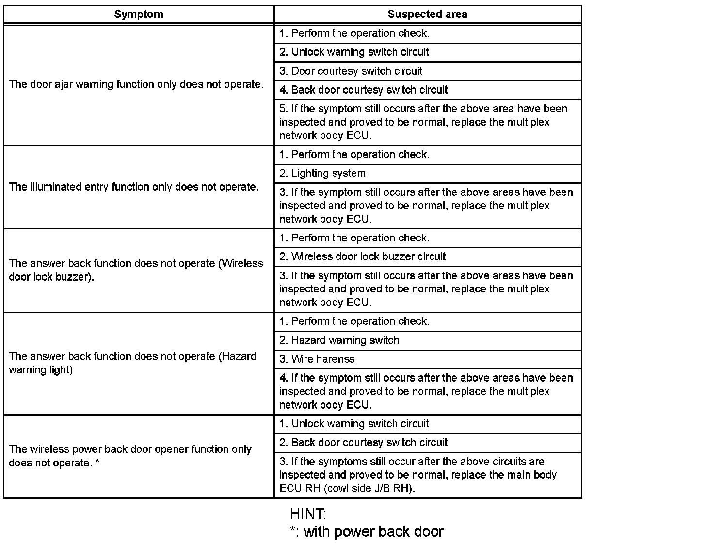 HINT: Inspect each malfunction circuit in numerical order for its corresponding symptom.