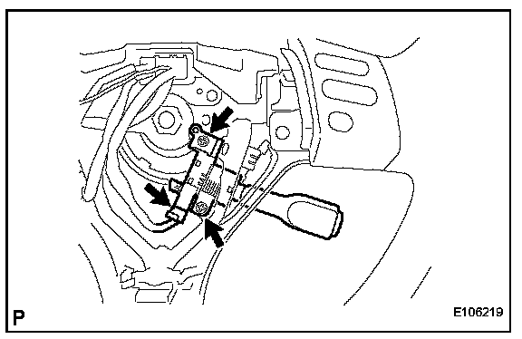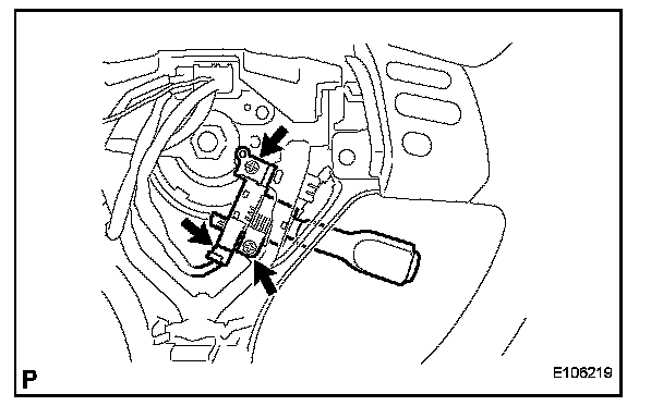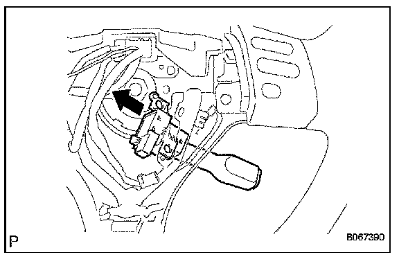 c. Pull the cruise control main switch in the arrow direction to remove it.