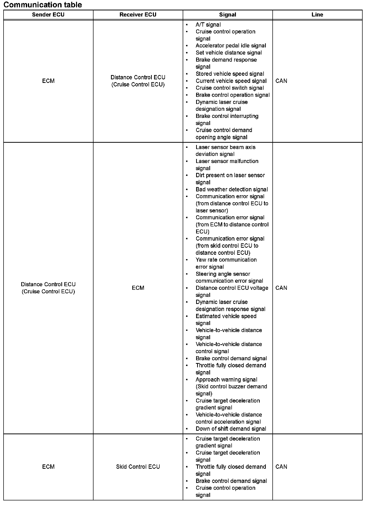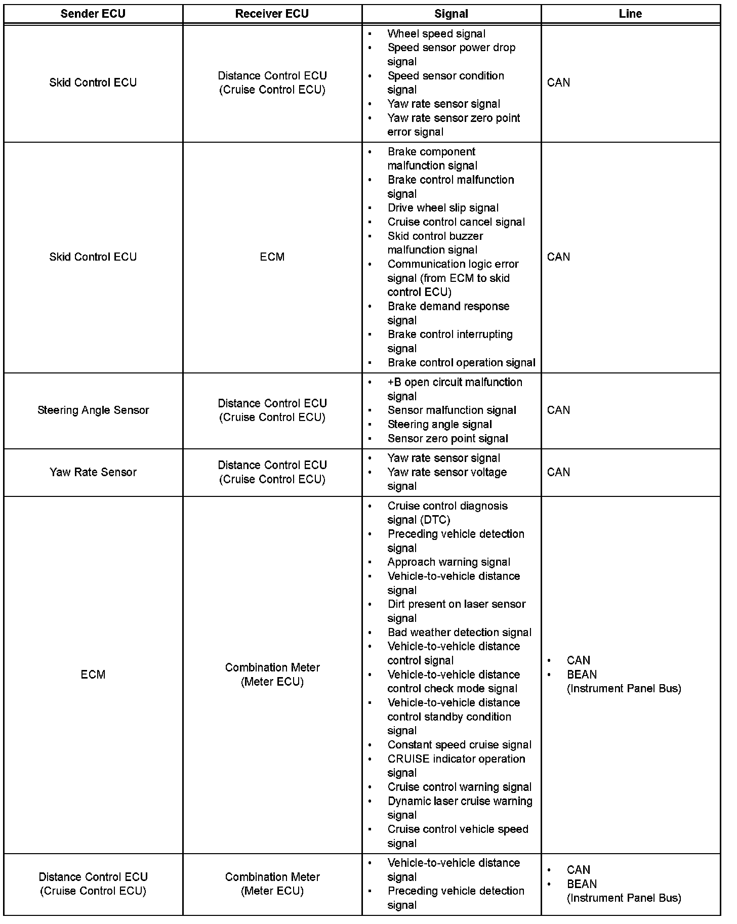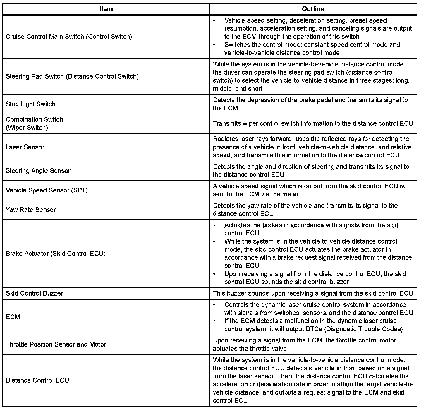 d. The laser sensor and the distance control ECU (cruise control ECU) control the system while the vehicle-to-vehicle distance control mode is in operation, and send signals to each actuator and ECU.