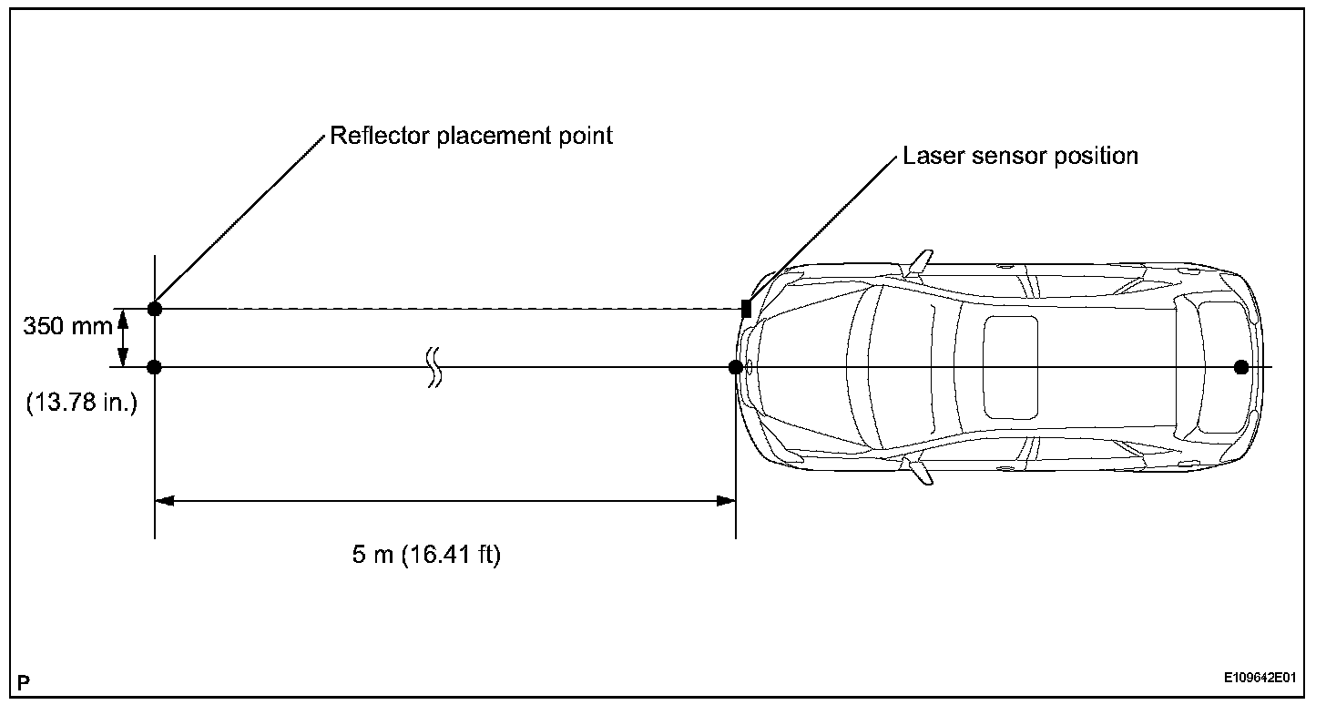 5. From the 5 m (16.41 ft) marked position, measure 350 mm (13.78 in.) to the right and place the reflector there.