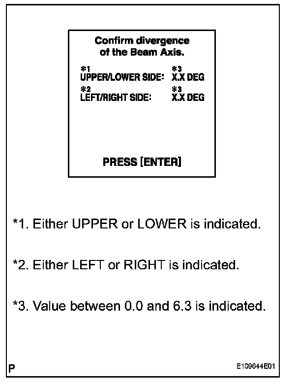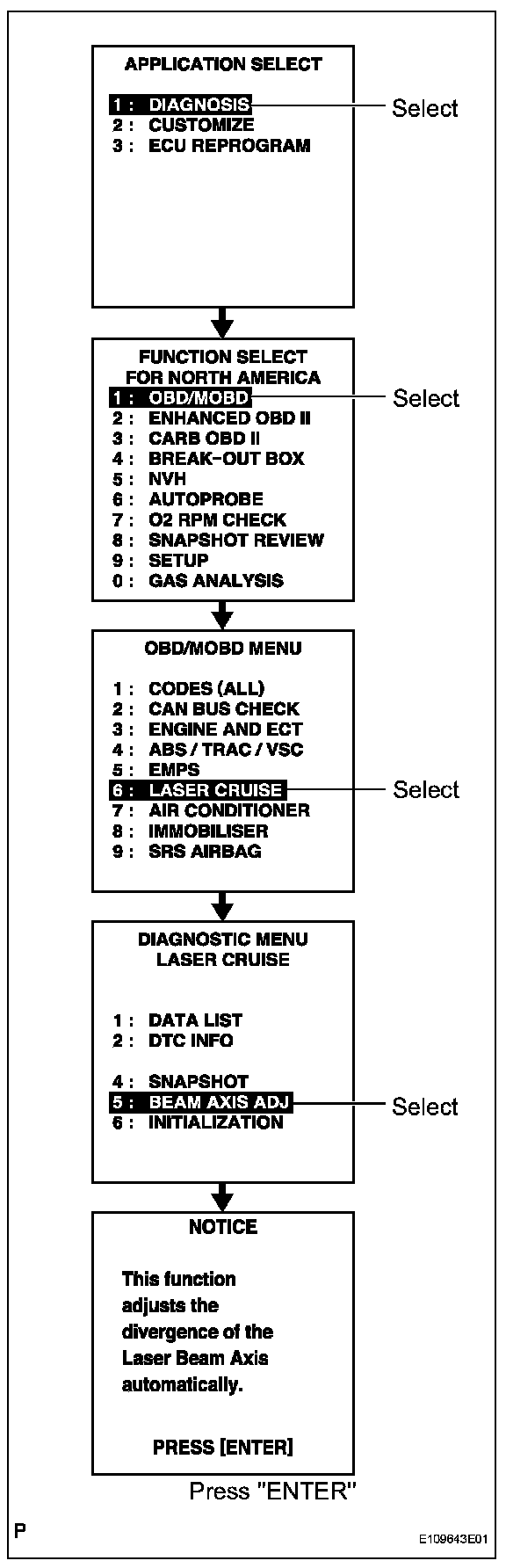 - Pressing the ''ENTER'' key will make the ECM transfer to BEAM AXIS ADJUSTMENT MODE.